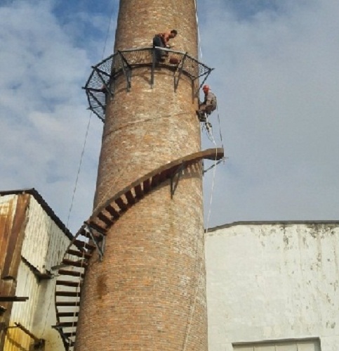 3、銅川煙囪安裝旋轉(zhuǎn)梯 銅川煙囪安裝檢測平臺:根據(jù)現(xiàn)場勘察的工作量及制定的加固措施對煙囪平臺、爬梯、護網(wǎng)該加固加焊的脫落和脫焊部位進行焊接施工,同時對于腐蝕較嚴重的部位還要進行必要的更換。具體操作方法是采用電焊機進行高空焊接安裝施工,由于焊接施工時會產(chǎn)生電焊火花,因此對于防火要求就顯得尤為重要,現(xiàn)場必須制定好安全防火措施,地面必須配備必要的防火器具和安全防護人員,嚴格做好各項安全防護工作。