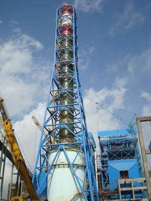 2.7 塔設(shè)符合安全規(guī)定的腳手架(用于手糊對接玻璃鋼煙囪)。