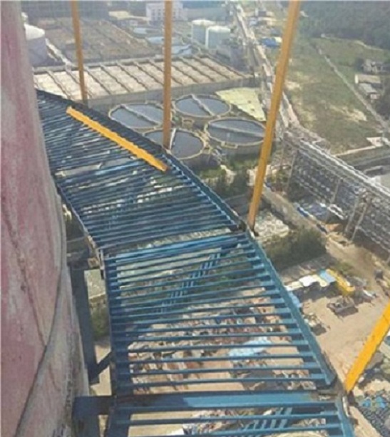 7、由工藝操作等特殊情況要求煙囪安裝平臺工程第1平臺為主要承重結(jié)構(gòu)時,則第1平臺必須采取輔助加固措施。煙囪加固加強(qiáng)平臺橫向的承載力度,以保證煙囪安裝平臺結(jié)構(gòu)的整體安全穩(wěn)定性。